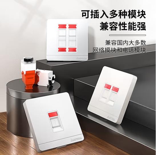 安普康AMPCOM 单口网络电话插座面板AM8601
